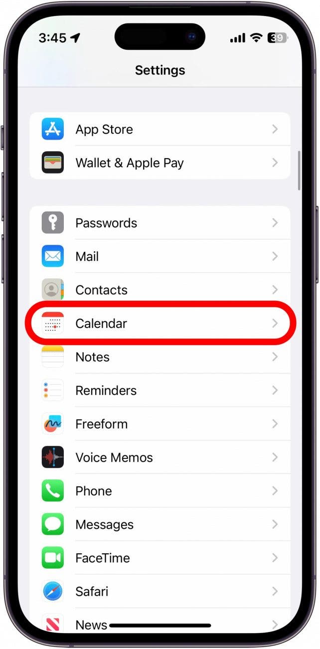 - 打开设置应用程序,然后点击日历。