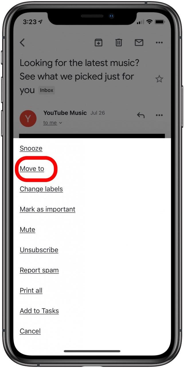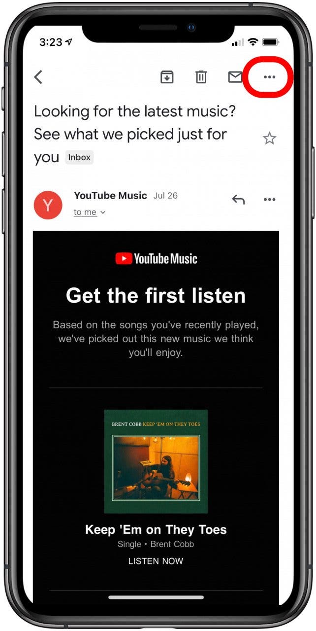 - 打开您要移动的电子邮件,然后点按三个点在屏幕的右上角。