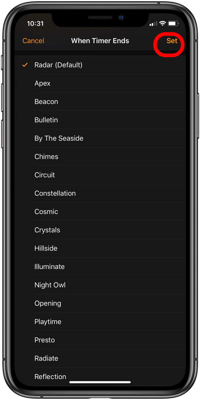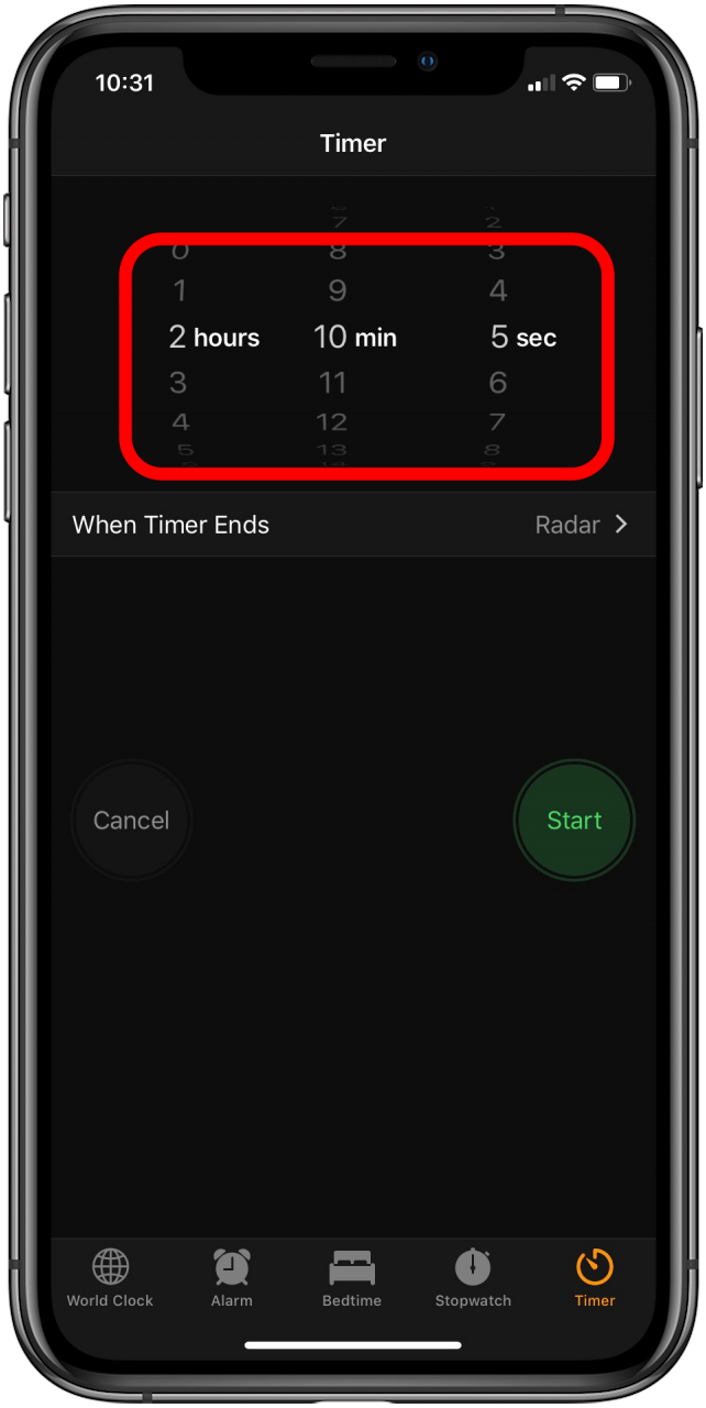 - 现在您已经设置了计时器持续时间并选择了警报声音,您就可以设置计时器了。