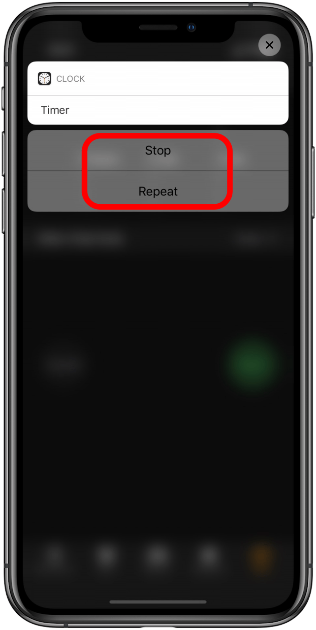 - 如果您的 iPhone 具有 3D Touch,请点击 3D Touch 提醒;如果没有,请向下滑动通知,然后选择是否要停止或重复计时器。 (查明您的 iPhone 是否具有 3D Touch这里.)