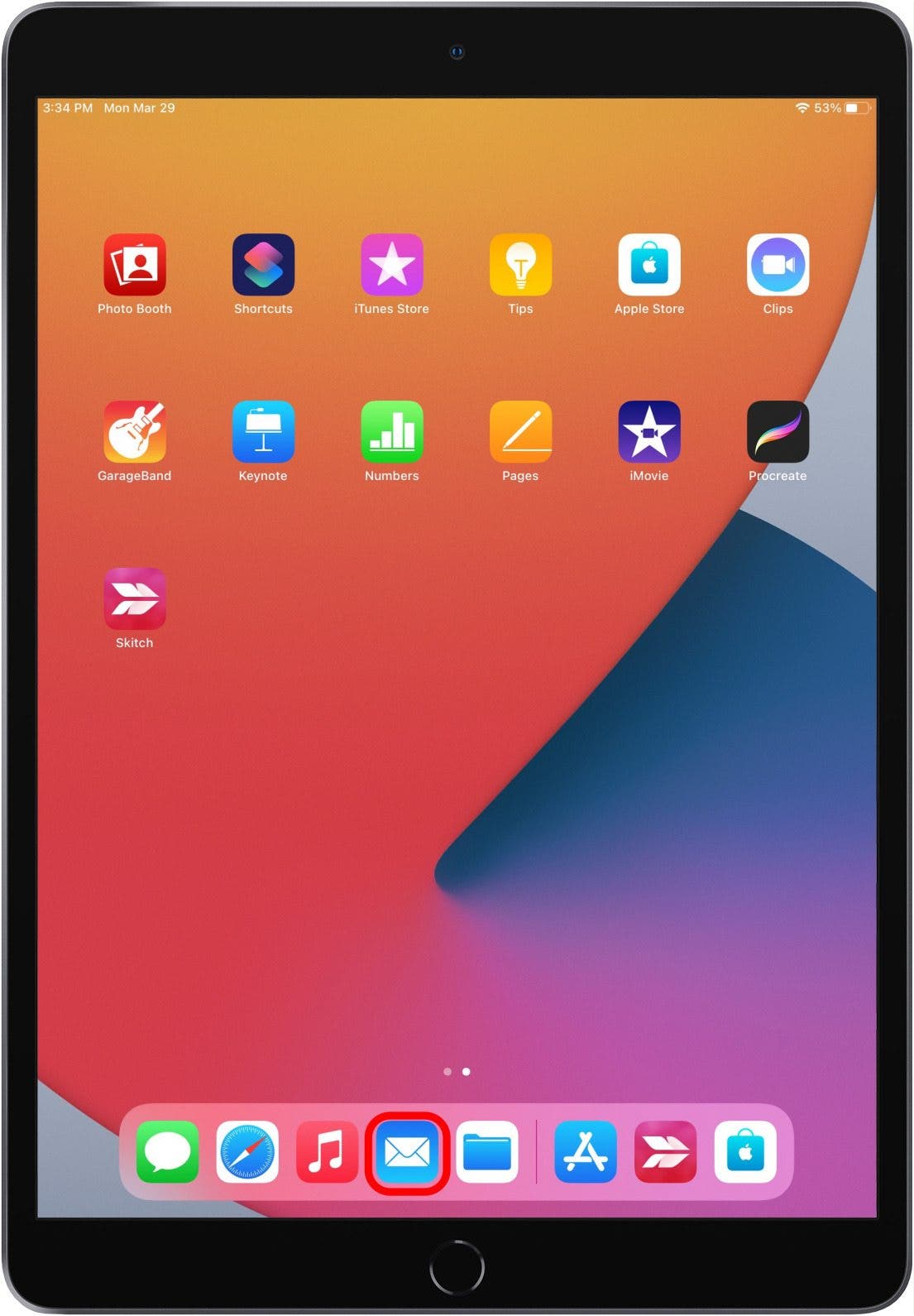 - 点击邮件应用程序在主屏幕上的扩展坞中。