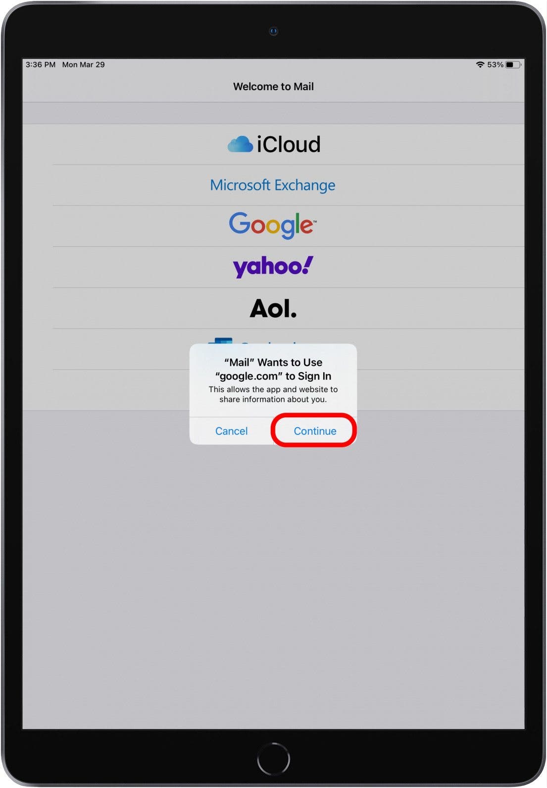 - 现在,按照屏幕上的说明完成 iPad 电子邮件的设置。