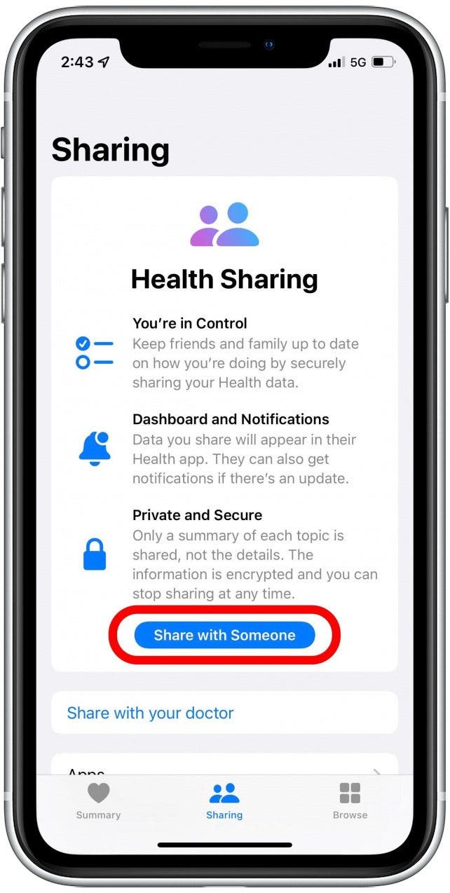 此时,最好让您的朋友、家人或护理人员知道他们需要查看“共享”选项卡上的“健康”应用程序以接受您的“健康共享”邀请。接下来,了解如何设置。