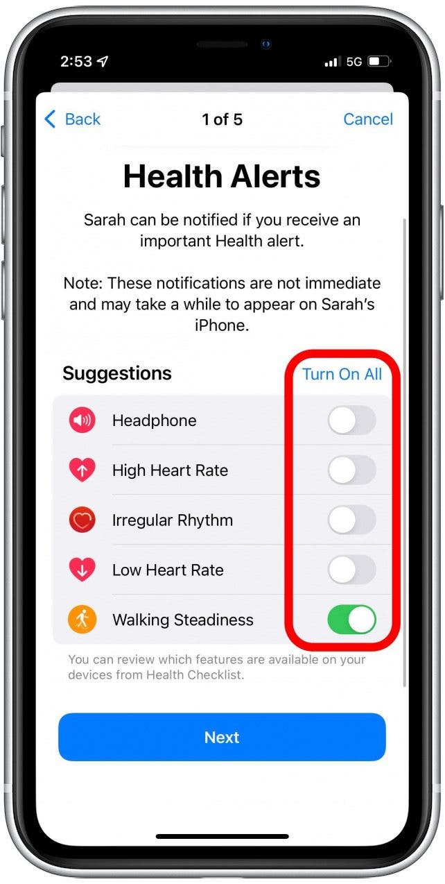 - 通过设置“行走稳定性”等重要指标的共享来关注您所爱的人或您所照顾的人。