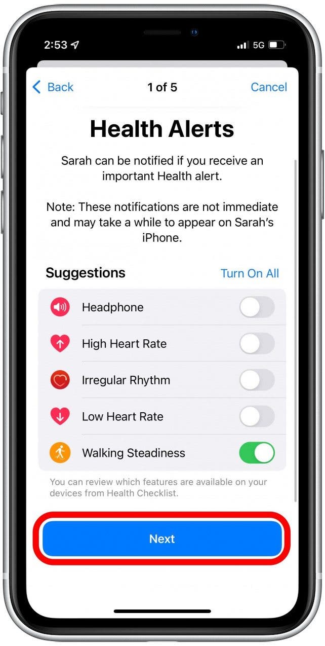 重要的:由于此健康应用程序提示使用仅在 iOS 15 及更高版本中可用的功能,因此如果您有较早的软件版本,则需要在使用这些步骤之前。