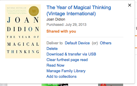 如果您选择共享所有有声读物和书籍,您将自动获得对它们的共享访问权限。如果您选择不共享,那么您可以决定要共享哪些单独的 Kindle 图书。您只需将想要阅读的共享书籍发送到您的设备,我们将在下面详细介绍如何访问与您共享的内容。