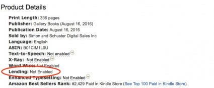 并非所有书籍都可以共享或借出。出版商决定一本书是否可以共享。有两种方法可以检查图书是否可以借阅:查看产品页面并在“产品详细信息”下查看。下图展示了一本未启用共享的书籍。第二种检查方法是按照下面的图书共享说明进行操作 - 如果“借出此书名”不是一个选项,则该书无法共享或之前已经共享过。