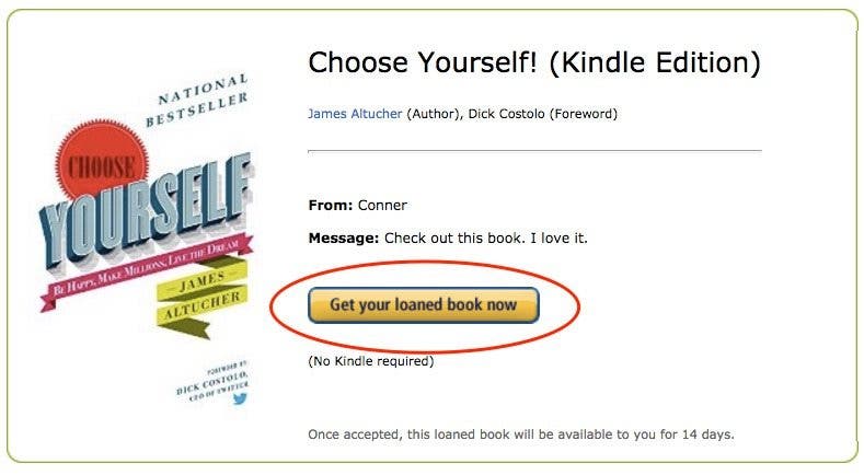 当朋友借给您一本 Kindle 图书时,您将收到一封电子邮件,告知您谁借给您一本 Kindle 图书。
