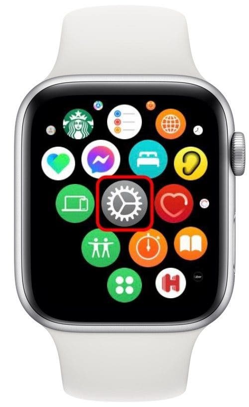 - 在 Apple Watch 上,打开设置应用程序。或者,您可以打开手表应用程序在您的 iPhone 上,并按照以下相同步骤操作。