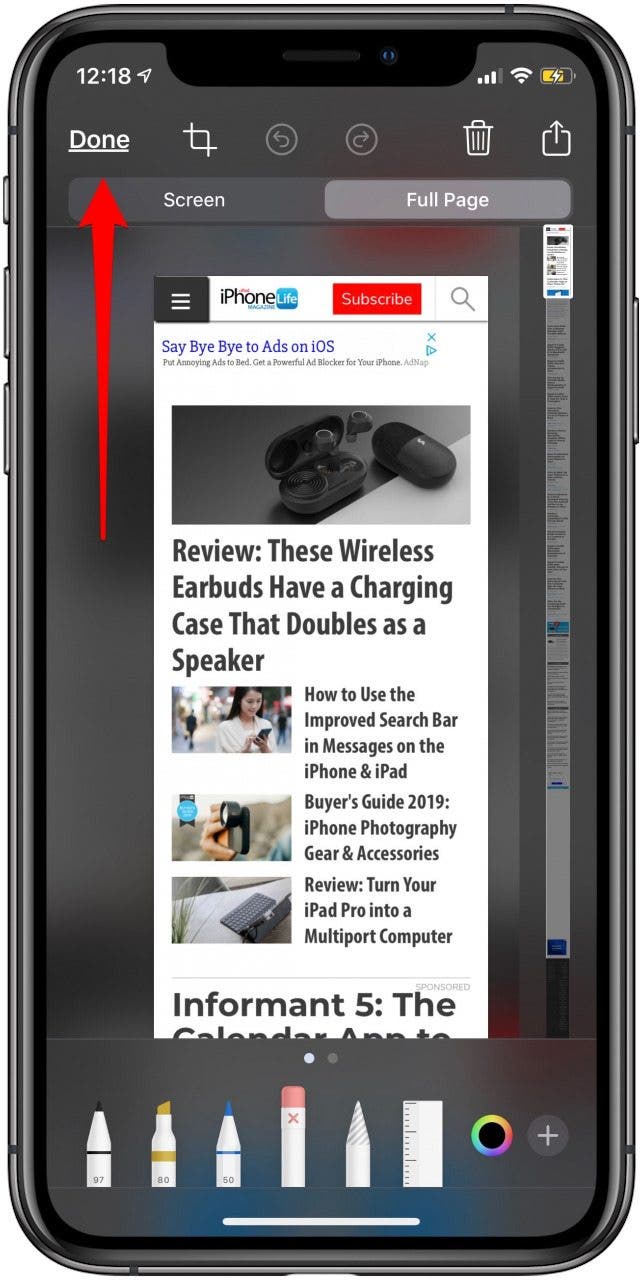 现在您可以将整个网页的屏幕截图保存到您的“文件”应用程序中!当您想要保存整篇文章而不必将其分成屏幕大小的各个部分时,这尤其方便。