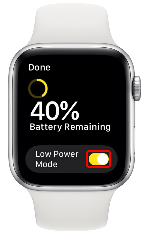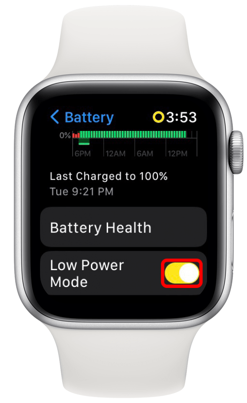 - 将启用低功耗模式,您将在手表屏幕顶部看到一个黄色圆圈图标。