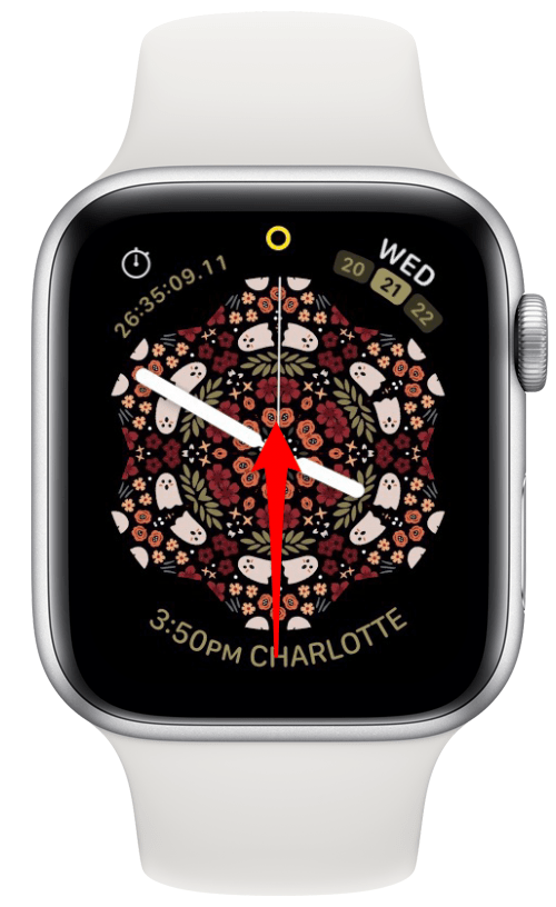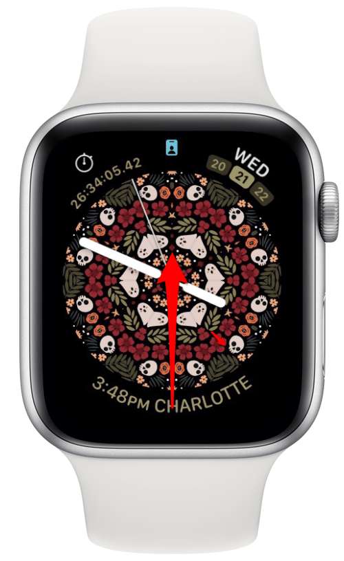 - 从表盘底部向上滑动即可访问 Apple Watch 的控制中心以打开低功耗模式。