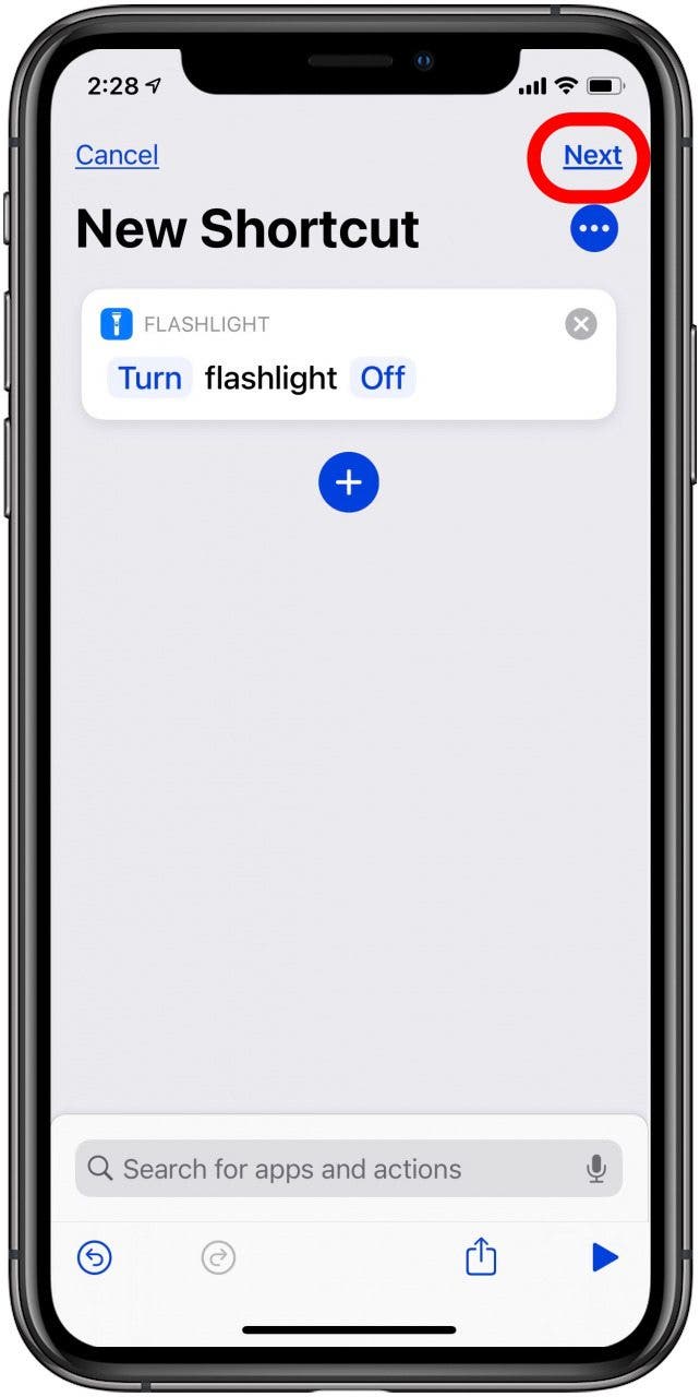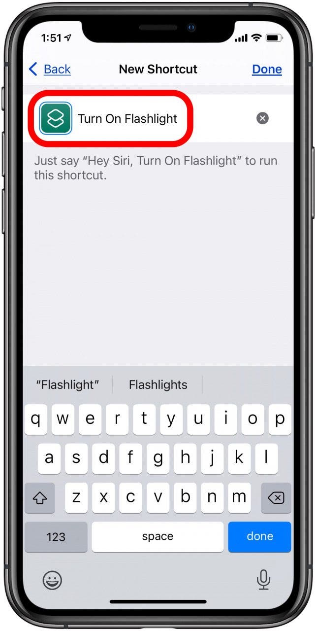- 将您的新快捷方式命名为“打开手电筒”或类似名称。