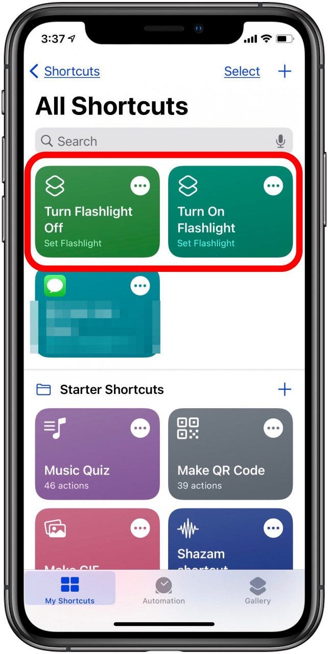 现在您已经创建了两个用于关闭和打开 iPhone 手电筒的快捷方式,您可以将这些快捷方式附加到“后按”功能。为此: