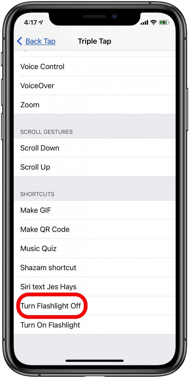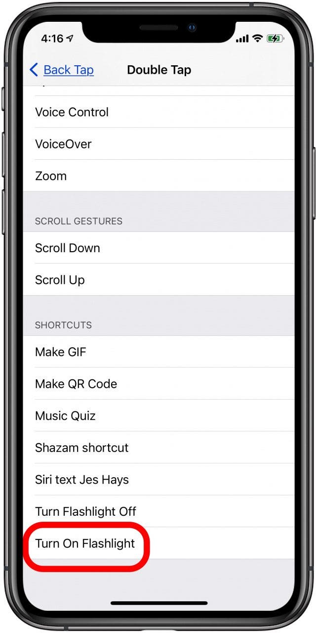- 现在,您可以双击 iPhone 屏幕背面来打开手电筒,然后点击三次来重新关闭手电筒。
