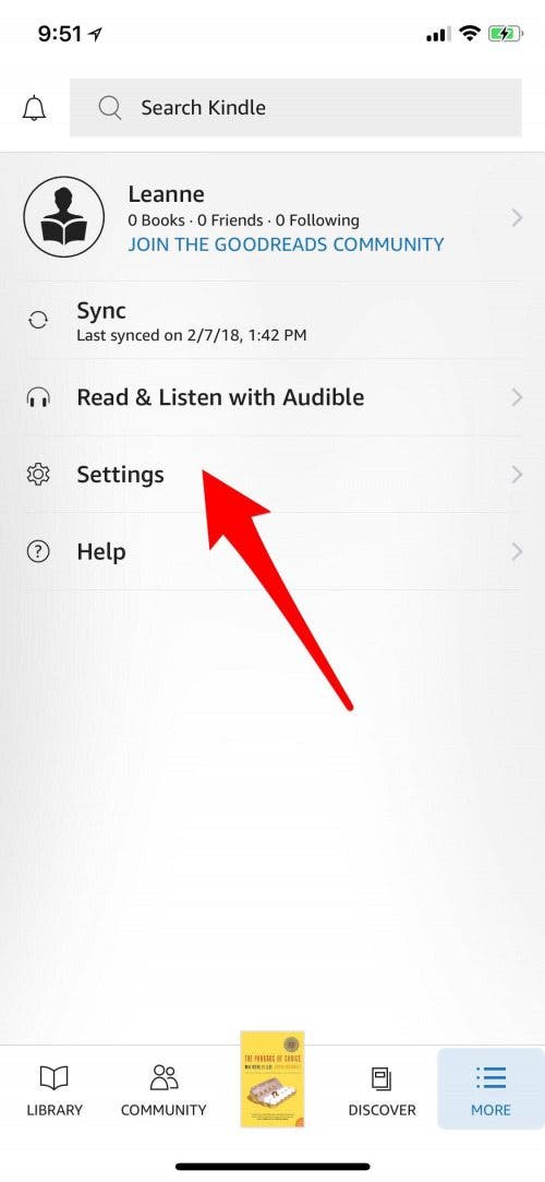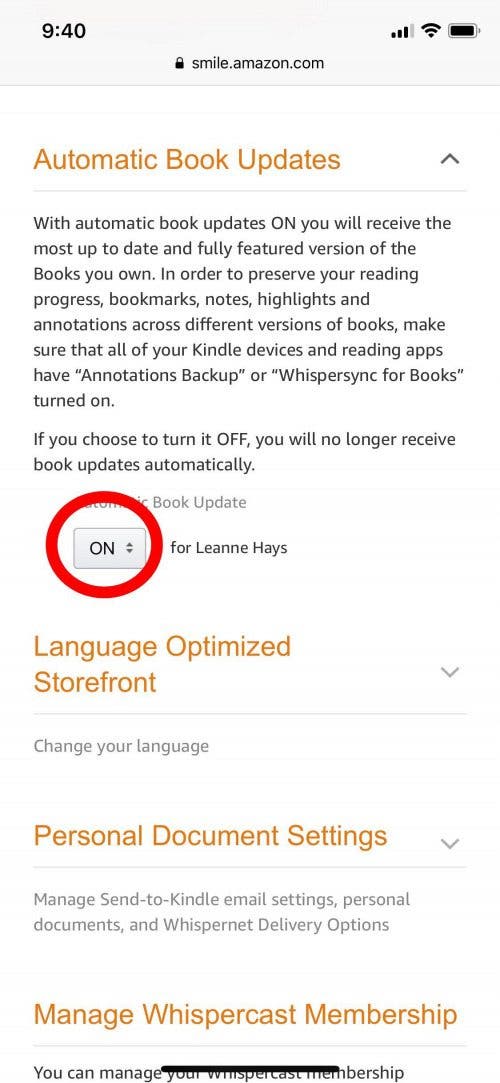 如您所见,Kindle 应用程序不包含确保图书内容自动更新的设置,因此既然您已确保 Whispersync 已打开,那么让我们开始打开自动更新吧。