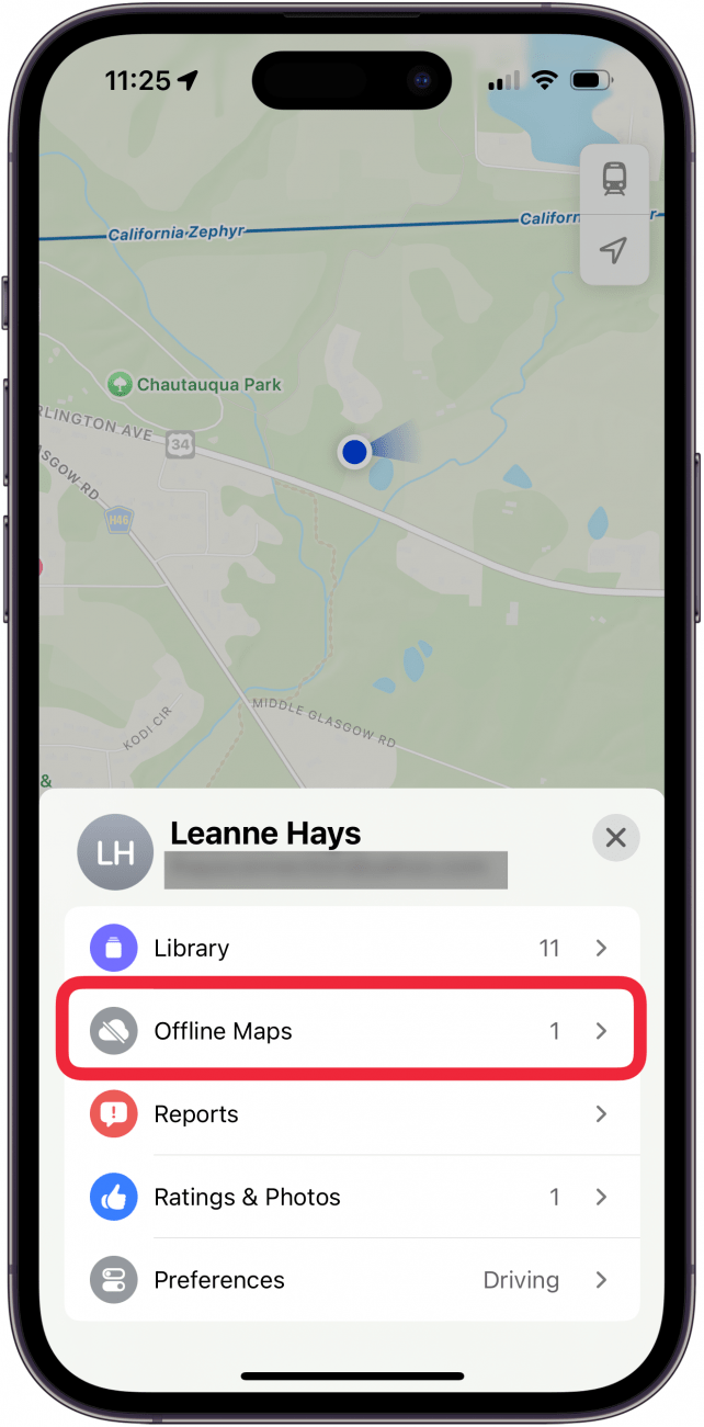 - 要查找您下载的地图,请点击您的个人资料图标。