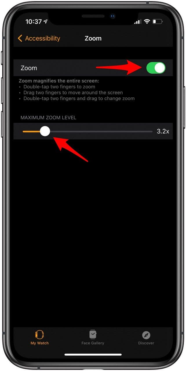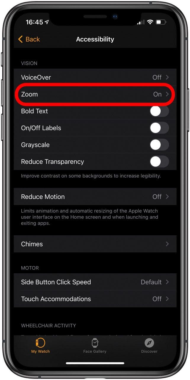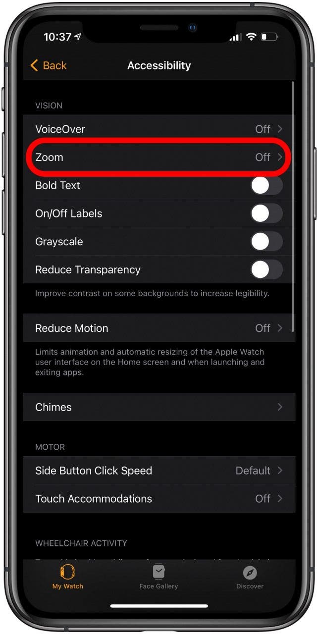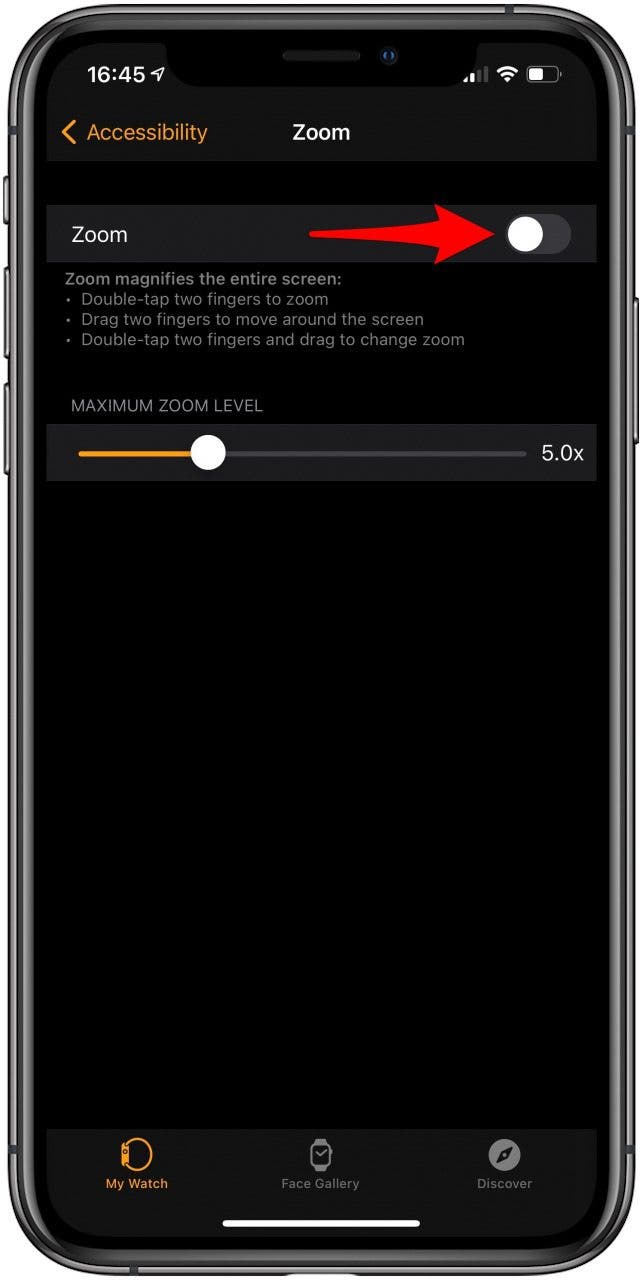缩放是一项很棒的功能,但永久启用 Apple Watch 缩放功能可能会很烦人。另外,启用此功能后,您无法使用其他双击手势。要禁用它: