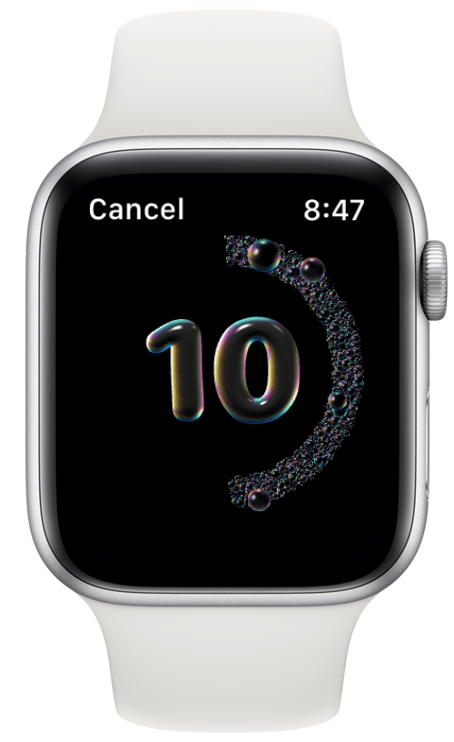 - 切换到洗手定时器让您的手表自动检测您何时开始洗手。这将启动计时器以确保洗手时间为 20 秒。