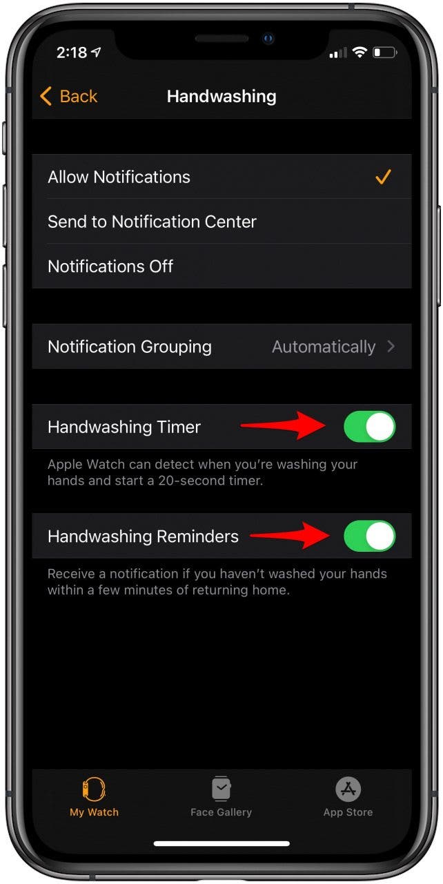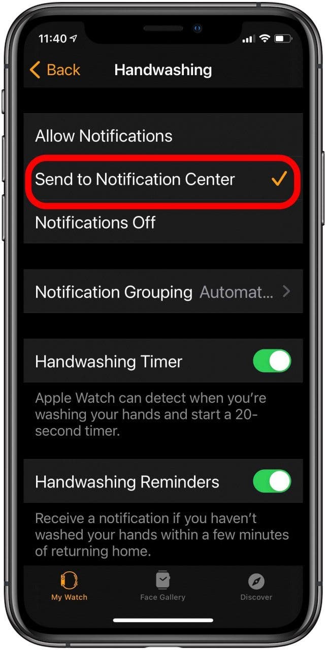 - 如果您不想提醒洗手,请选择通知关闭。