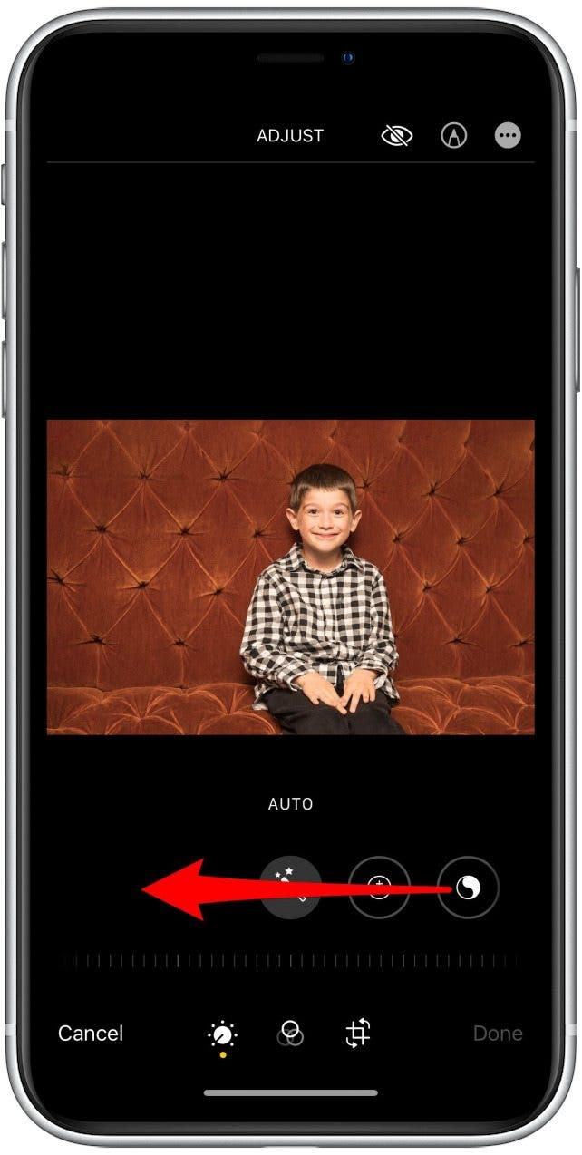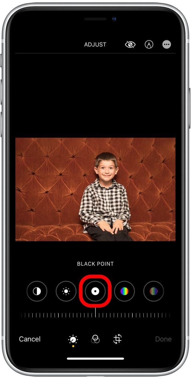 - 左右滑动刻度以调整照片中的黑点。