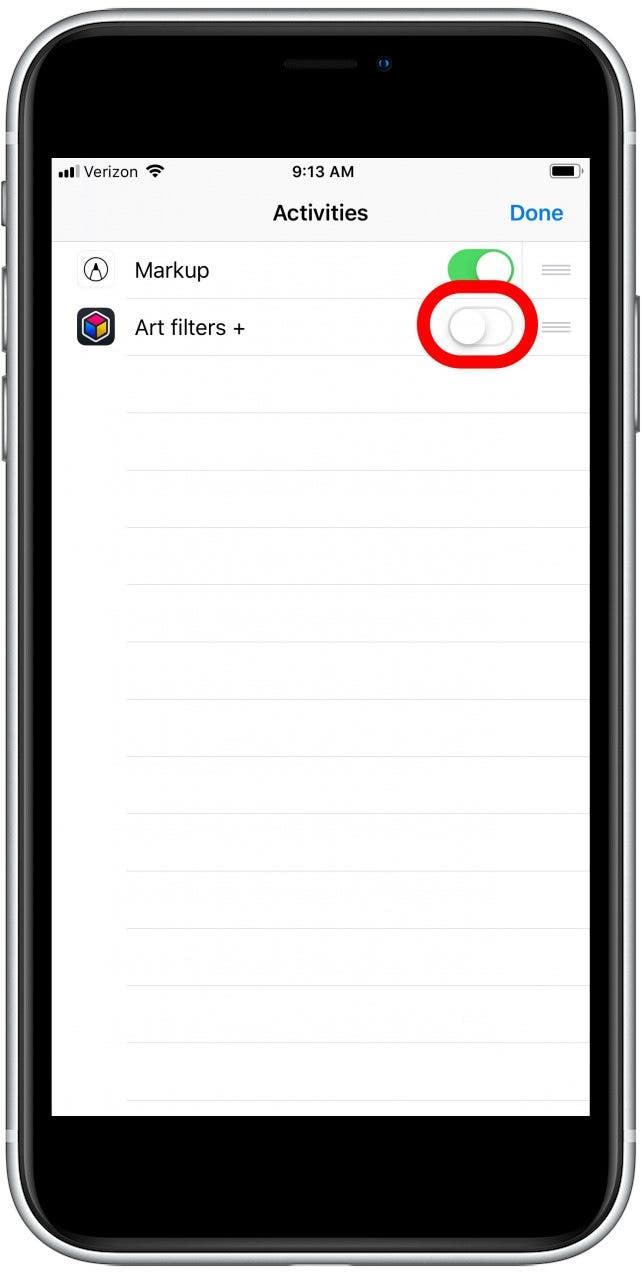 - 如果您的应用程序有照片扩展程序,它将显示在此屏幕上的列表中。