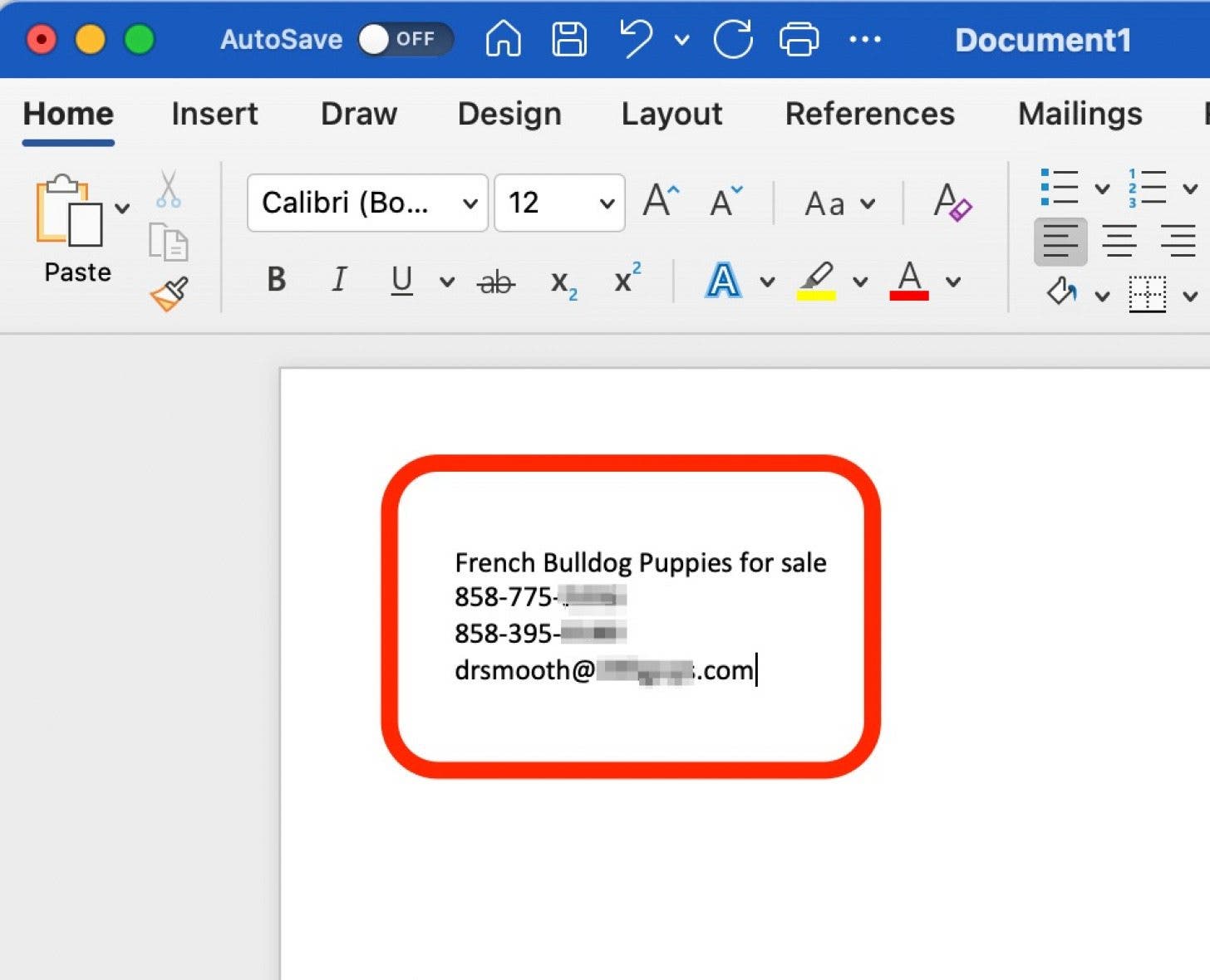 - 在此示例中,我们将文本粘贴到 Microsoft Word 文档中。