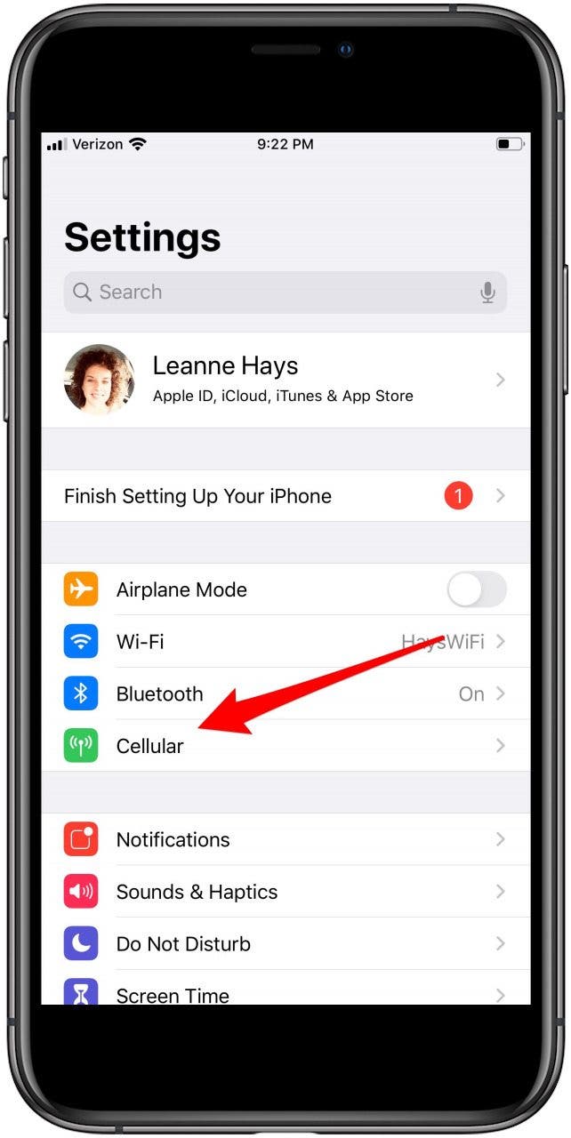 - 轻敲蜂窝网络,然后点击蜂窝数据选项。