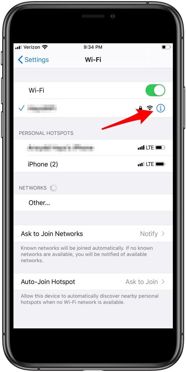 - 点击信息图标位于您的设备所连接的 Wi-Fi 网络旁边。