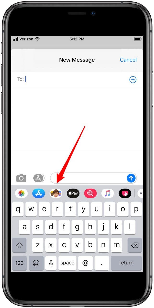 - 在支持贴纸的应用程序中打开键盘;在本例中,我使用的是消息。