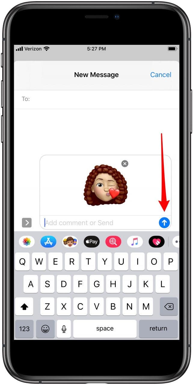 - 在您选择的贴纸包中向上滚动以查看所有选项,然后点击您要发送的贴纸。