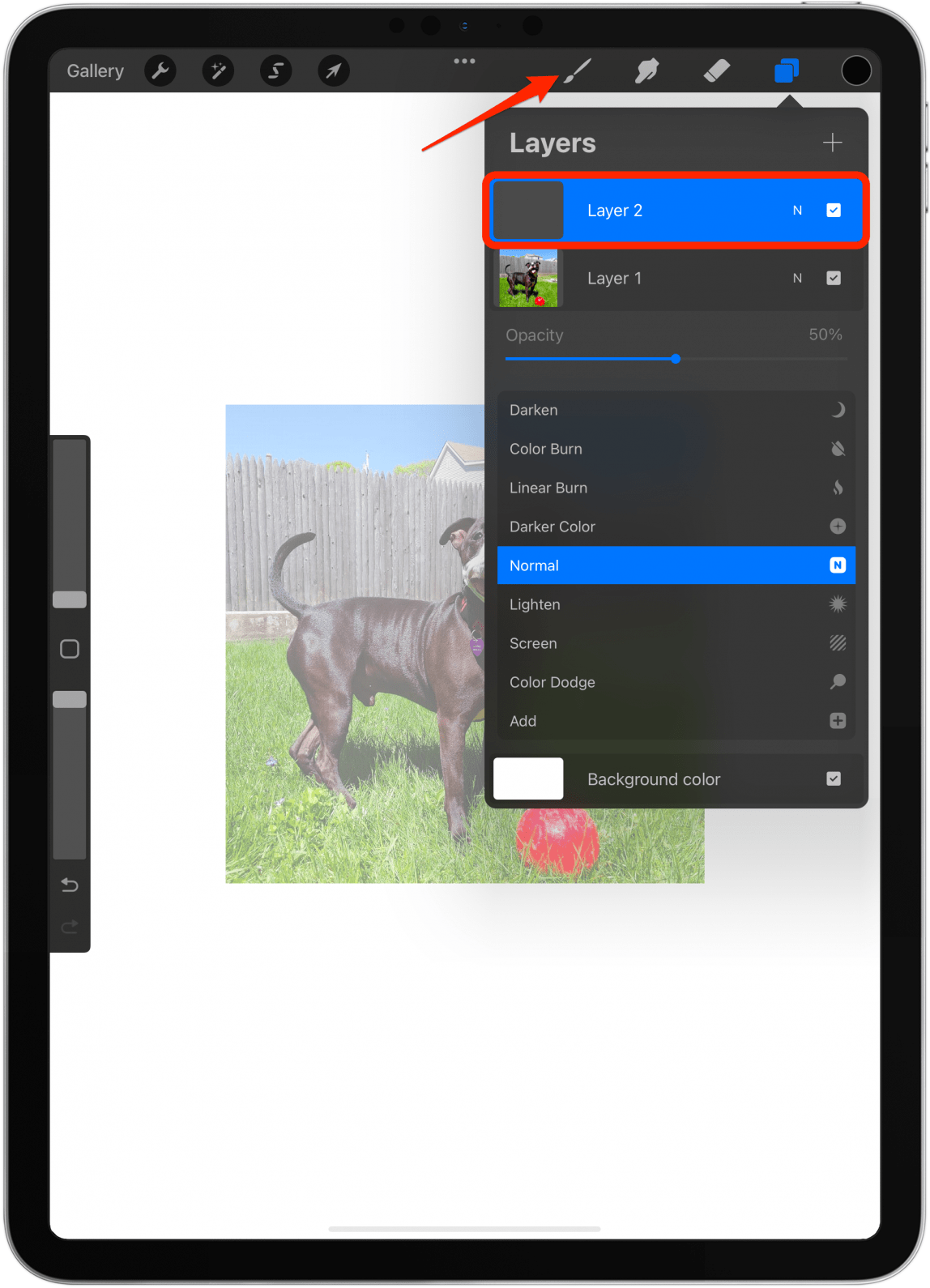 - 确保选择空白图层并点击画笔图标。