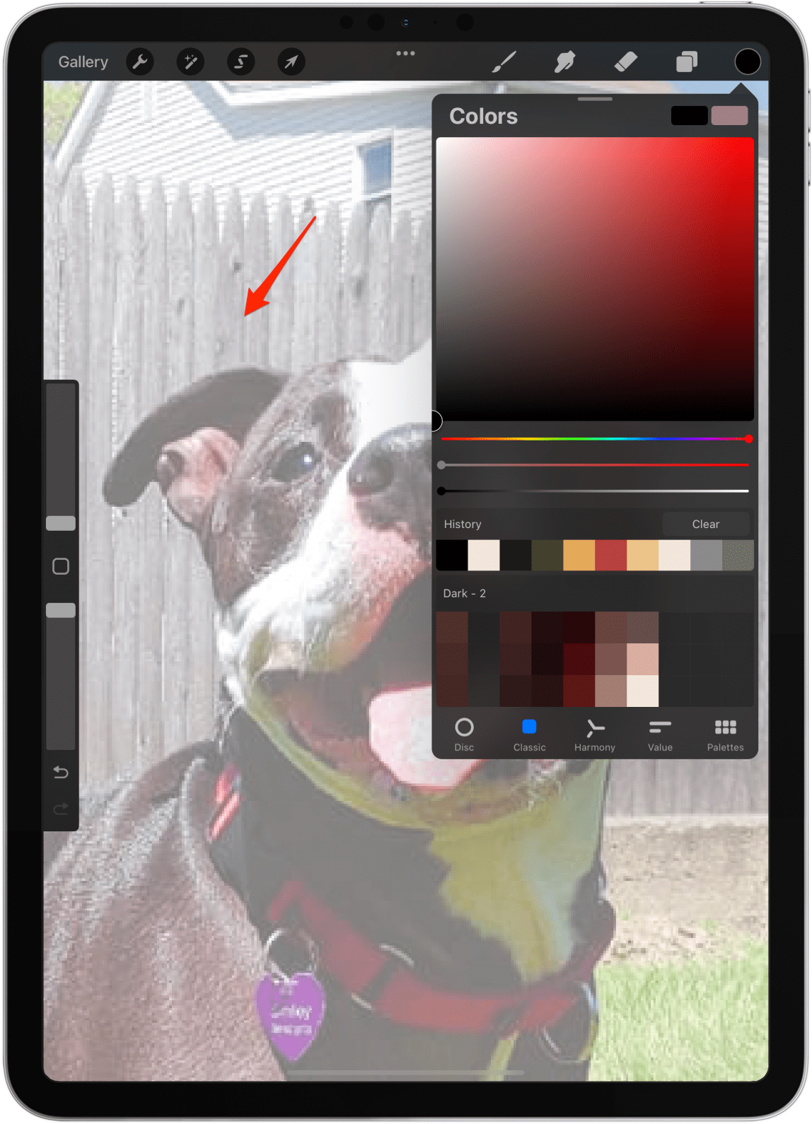 - 点击色环以选择要用来绘制的颜色。我会坚持使用黑色,但我会在下面链接的另一篇文章中介绍有关颜色的更多提示。点击您想要使用的颜色。