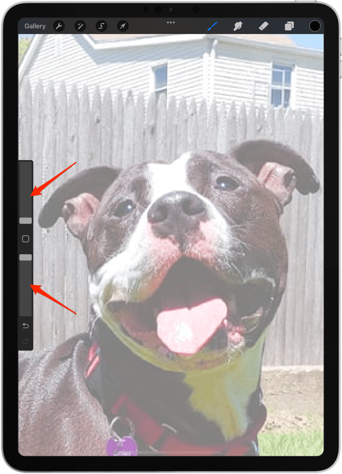 - 在不透明度下,将蓝点拖动到 50%。这样您仍然可以看到照片以及您在照片上绘制的任何内容。