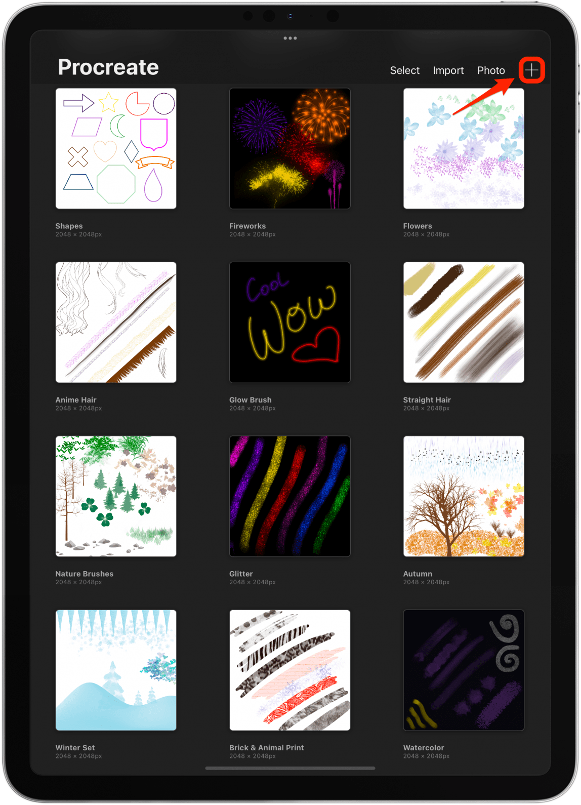 - 开始屏幕称为图库视图。从这里,您可以查看所有项目并可以开始一个新项目。轻敲+开始一个新项目。