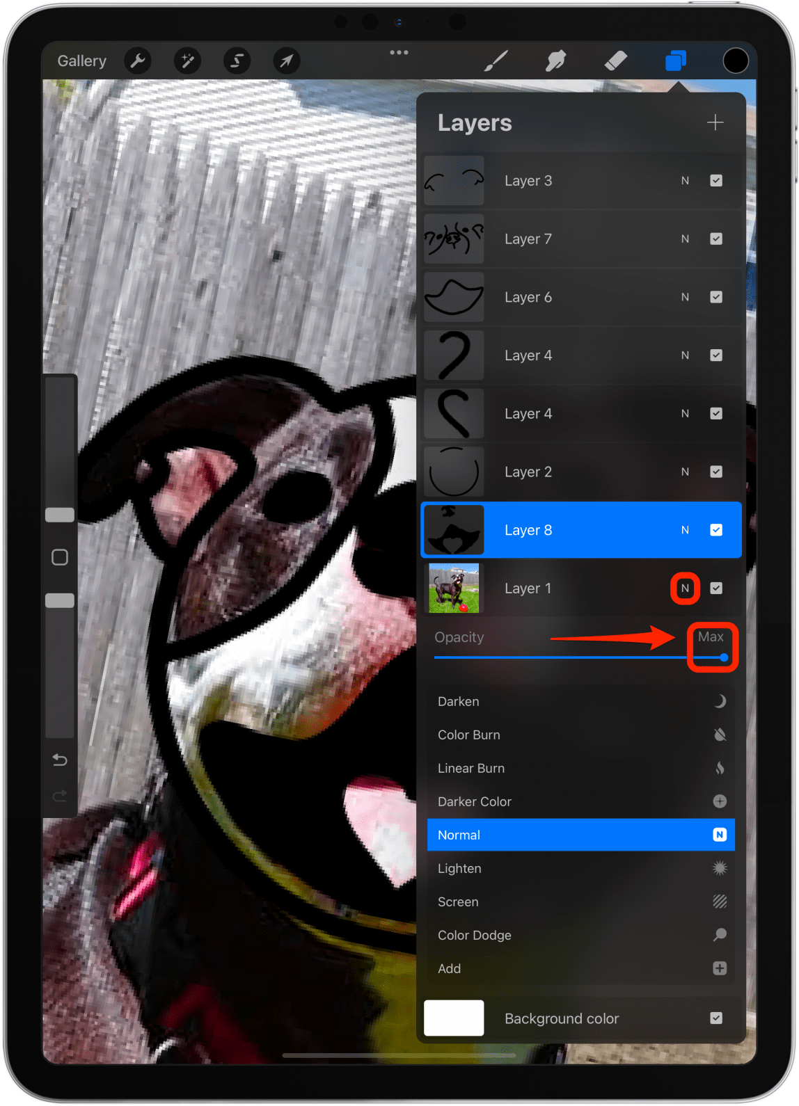 - 您可以做的还有很多;任何艺术家都会告诉你,很难判断一个项目何时完成。我画卡通宠物或人物的一个技巧是在眼睛里添加一点闪烁,让它变得生动起来。我通过在最顶部创建一个新层并轻轻敲击眼睛,有时是鼻子,也可能是舌头来做到这一点。这一切都取决于您的创意偏好!