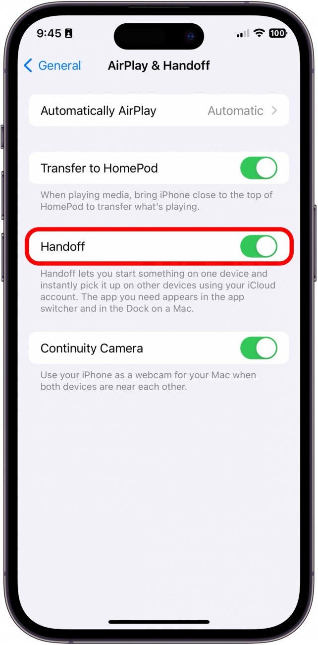 为了使通用剪贴板顺利工作,请确保您的所有设备都已连接到 Wi-Fi 并且。接下来,您需要确保 iPhone 设置中的 AirPlay 和 Handoff 已打开。为此: