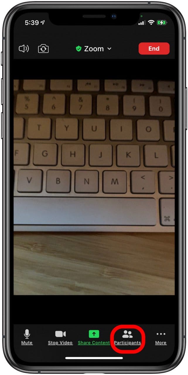 - 点击屏幕以显示底部的控件,然后点击参加者。
