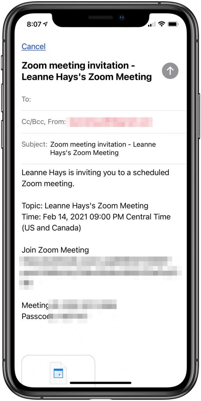 你可以到另一个iPhone、iPad 或 Mac。按照上述步骤开始 Zoom 会议,然后照常邀请参与者并分享邀请。从这里:
