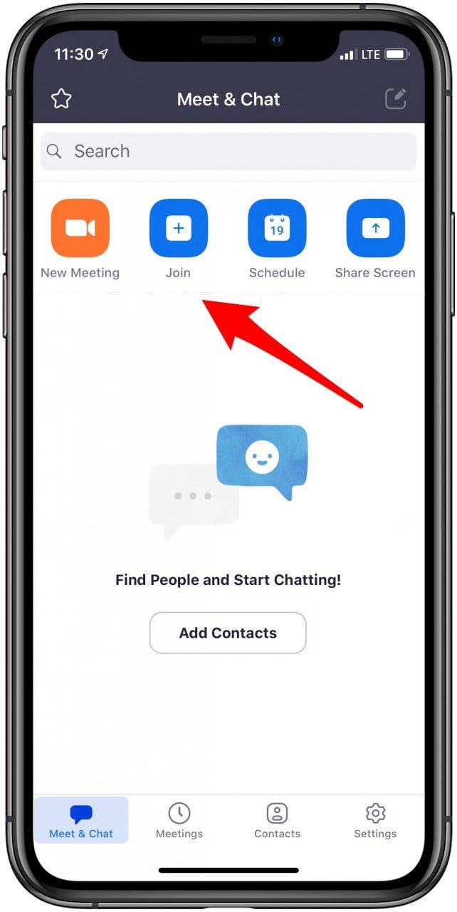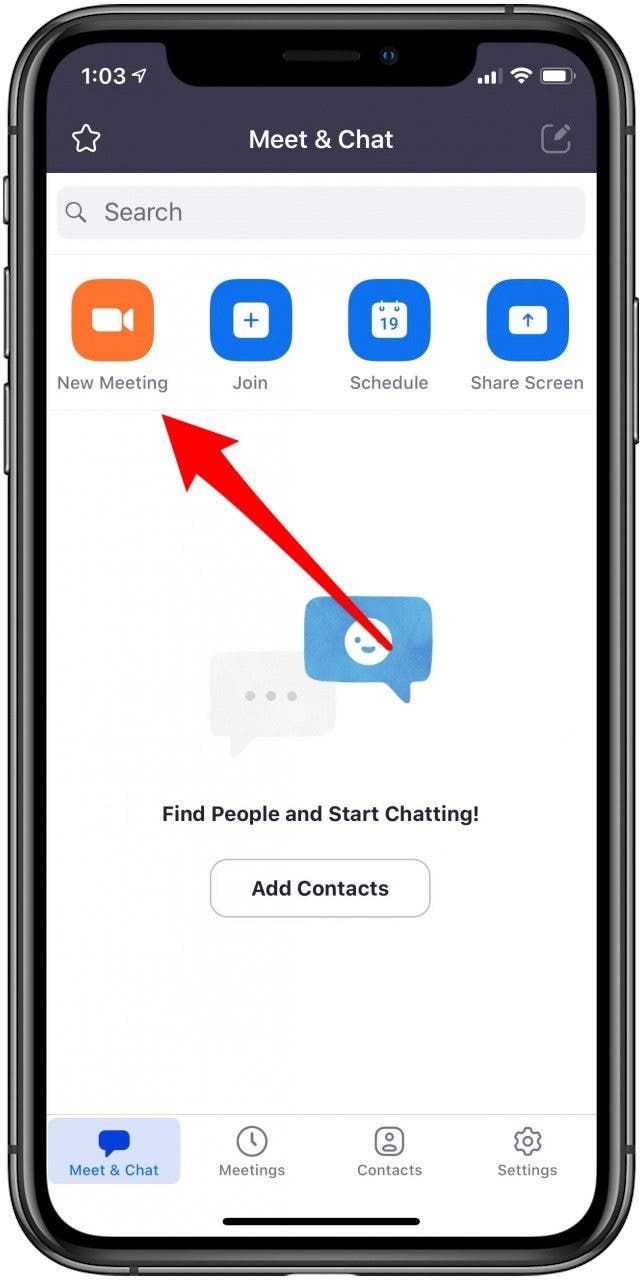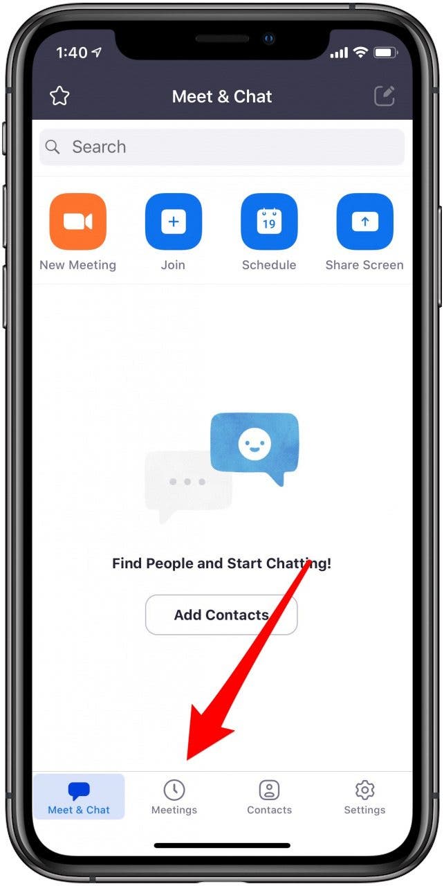 - 轻敲会议在 Zoom 应用程序主屏幕上。
