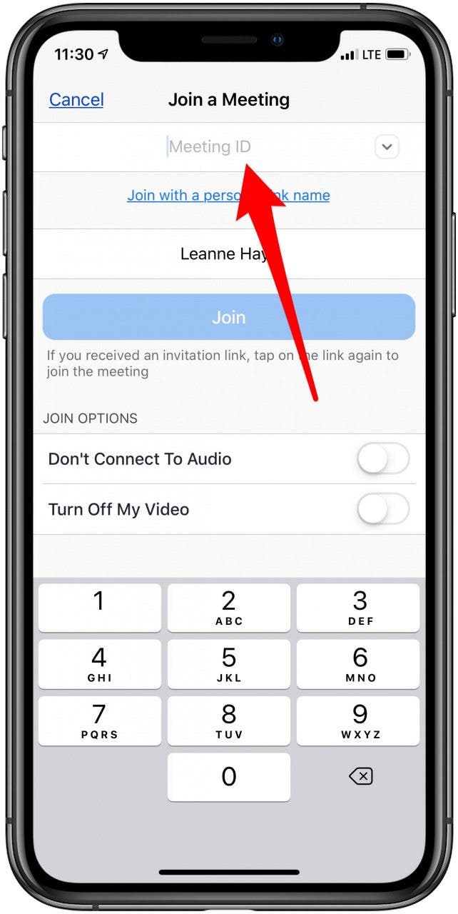 - 当会议开始时,点击开始Zoom 主屏幕上其会议 ID 旁边。