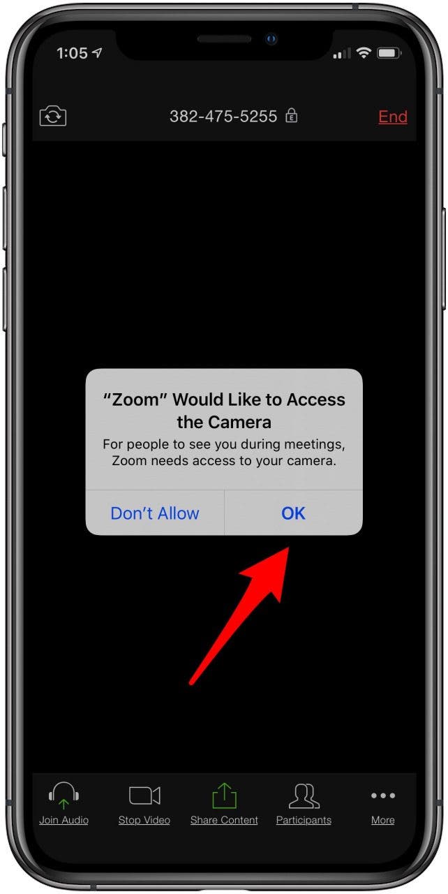 - 如果您想要视频,请点按好的当应用程序请求访问相机时。