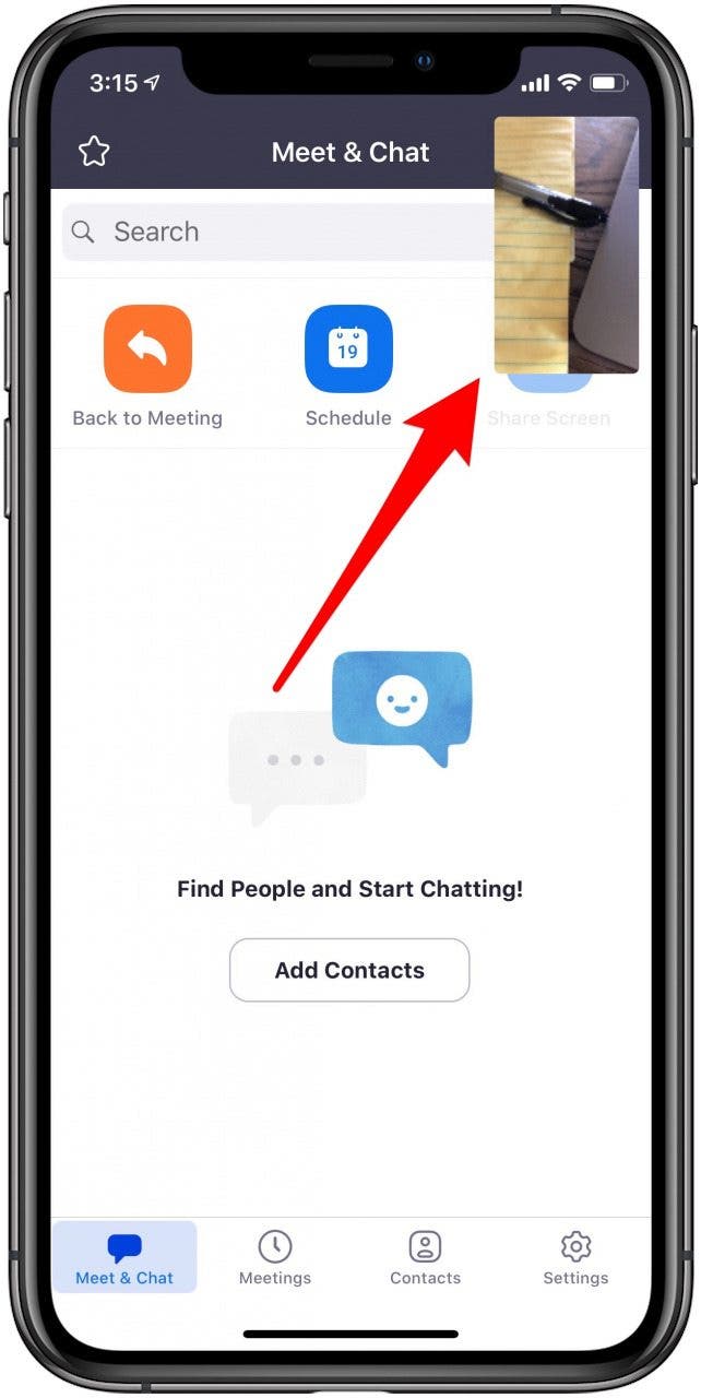 - 轻敲尽量减少会议将会议显示缩小到屏幕的一小部分。