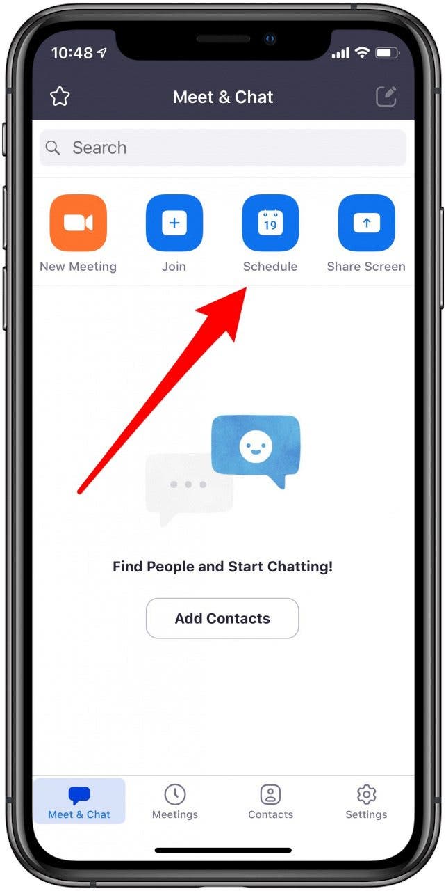 - 点击日程Zoom 应用程序主屏幕上的选项卡。