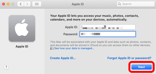 - 在弹出窗口中输入您的 Apple ID 信息并单击,重新登录您的 iCloud/Apple ID下一个。
