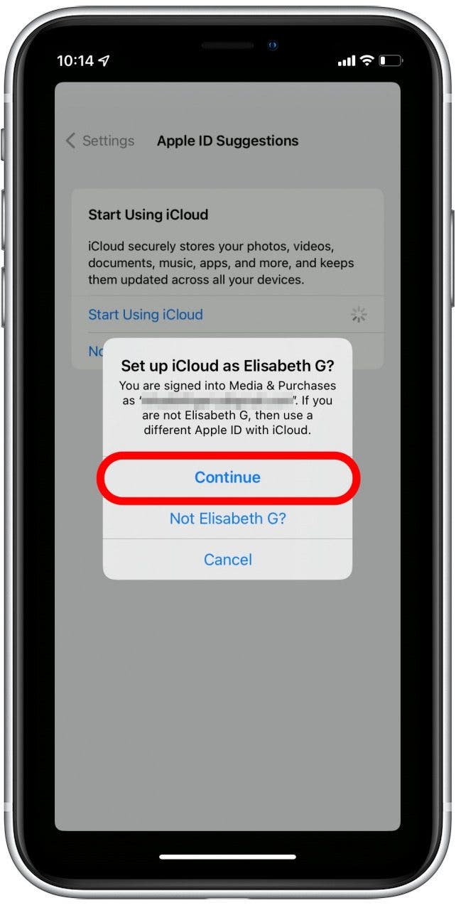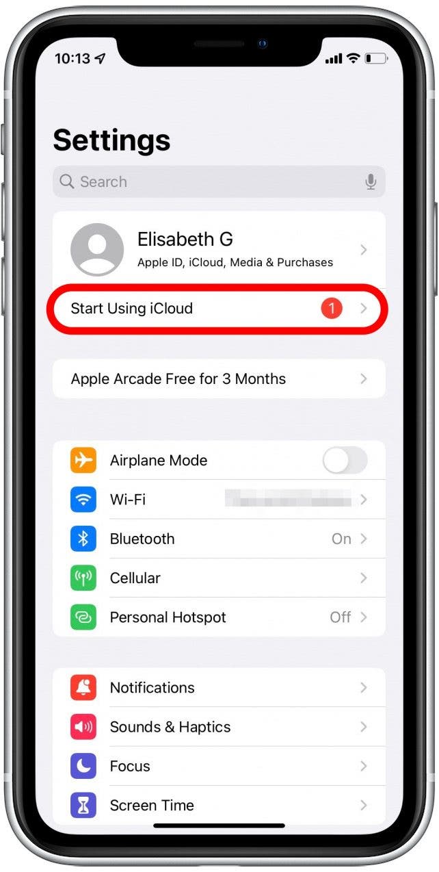 - 注销后,您将返回到“设置”。点击开始使用 iCloud。