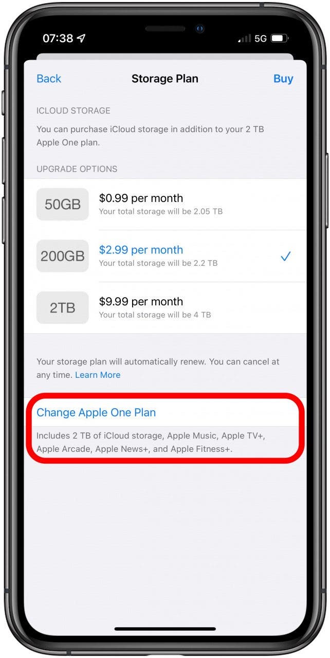 - 如果您有 Apple One,您可以通过轻按来更改 iCloud 存储空间更改 Apple One 计划。