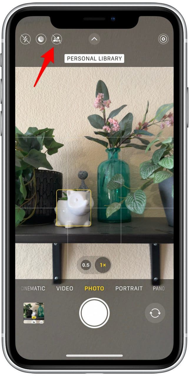 - 打开相机应用程序在 iPhone 上,您会在左上角的夜间模式和 Flash 图标旁边看到一个看起来像两个人的图标。请注意,仅当您设置了 iCloud 共享照片库时才会出现此图标。
