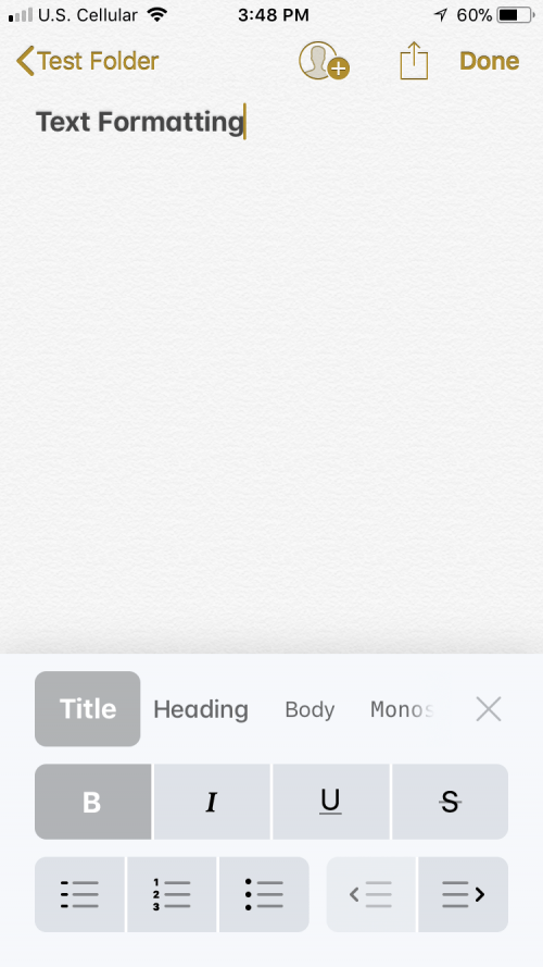文本格式一直是 Notes 中最具挑战性的功能之一。好吧,我们现在可以正式地说文本格式已经达到了一个新的友好水平。现在,我们不再需要按住文本并从微小的弹出菜单中选择粗体、斜体或下划线,而是可以随时使用宽敞的格式设置菜单。