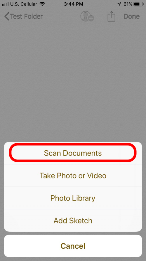 - 从菜单中选择“扫描文档”。